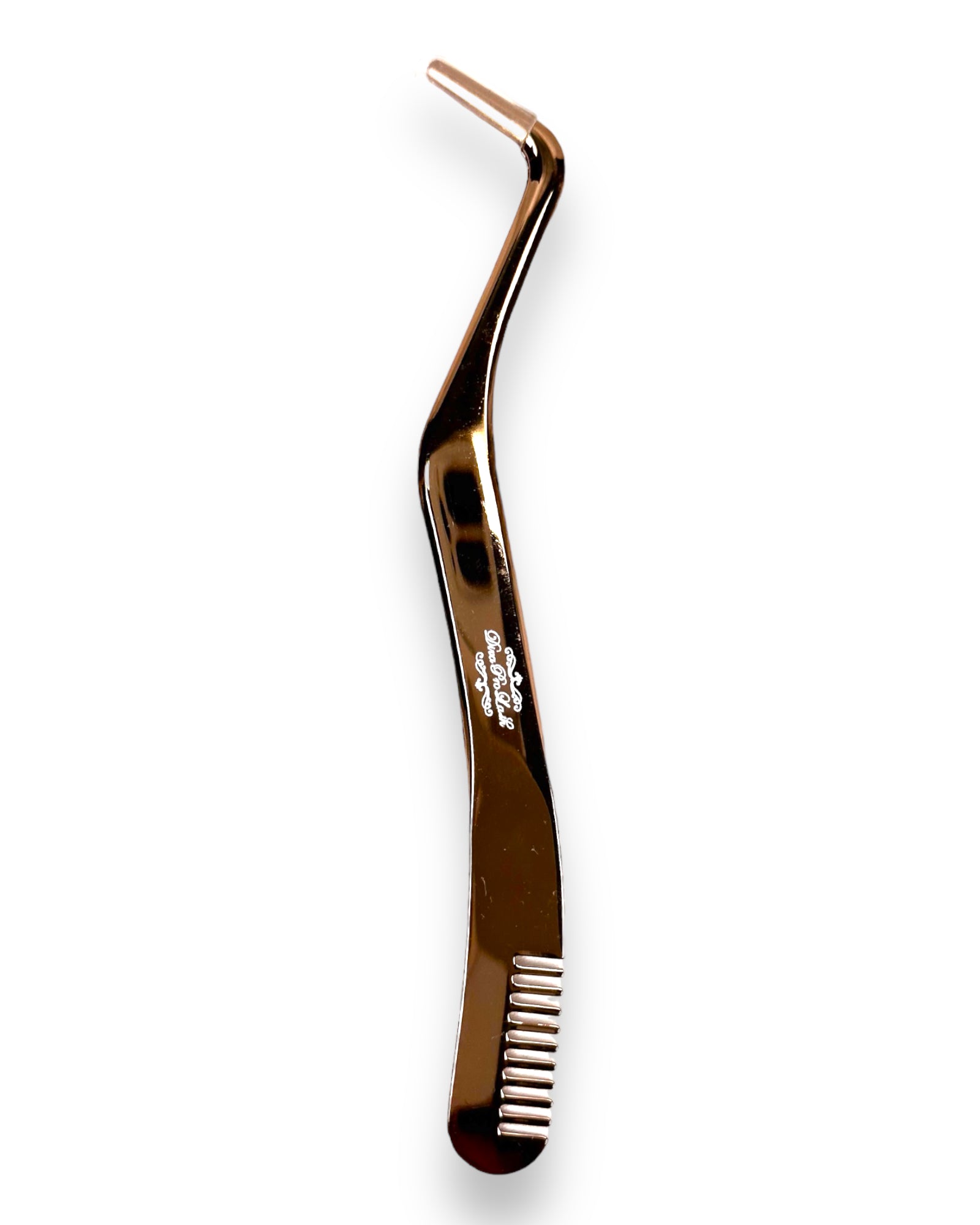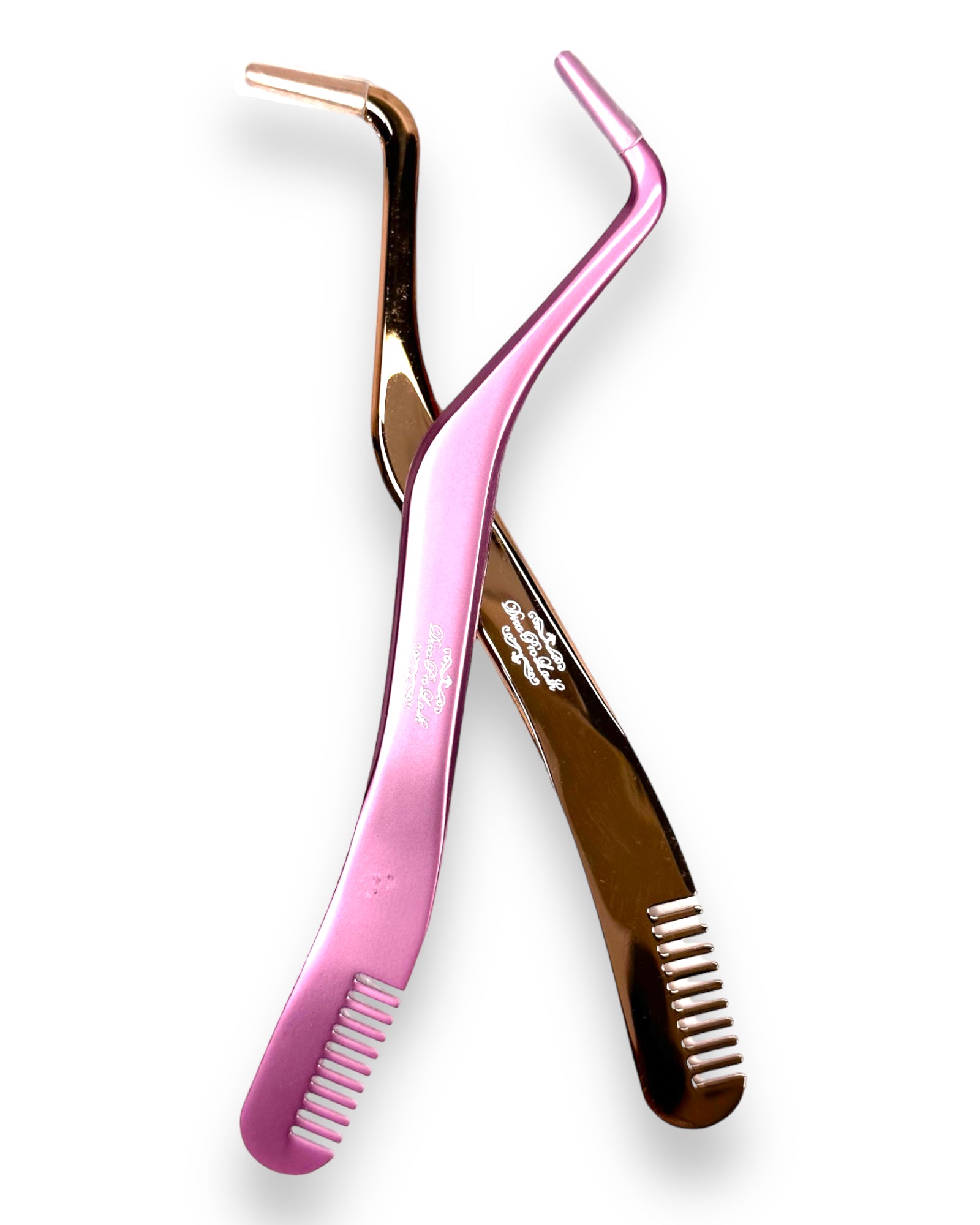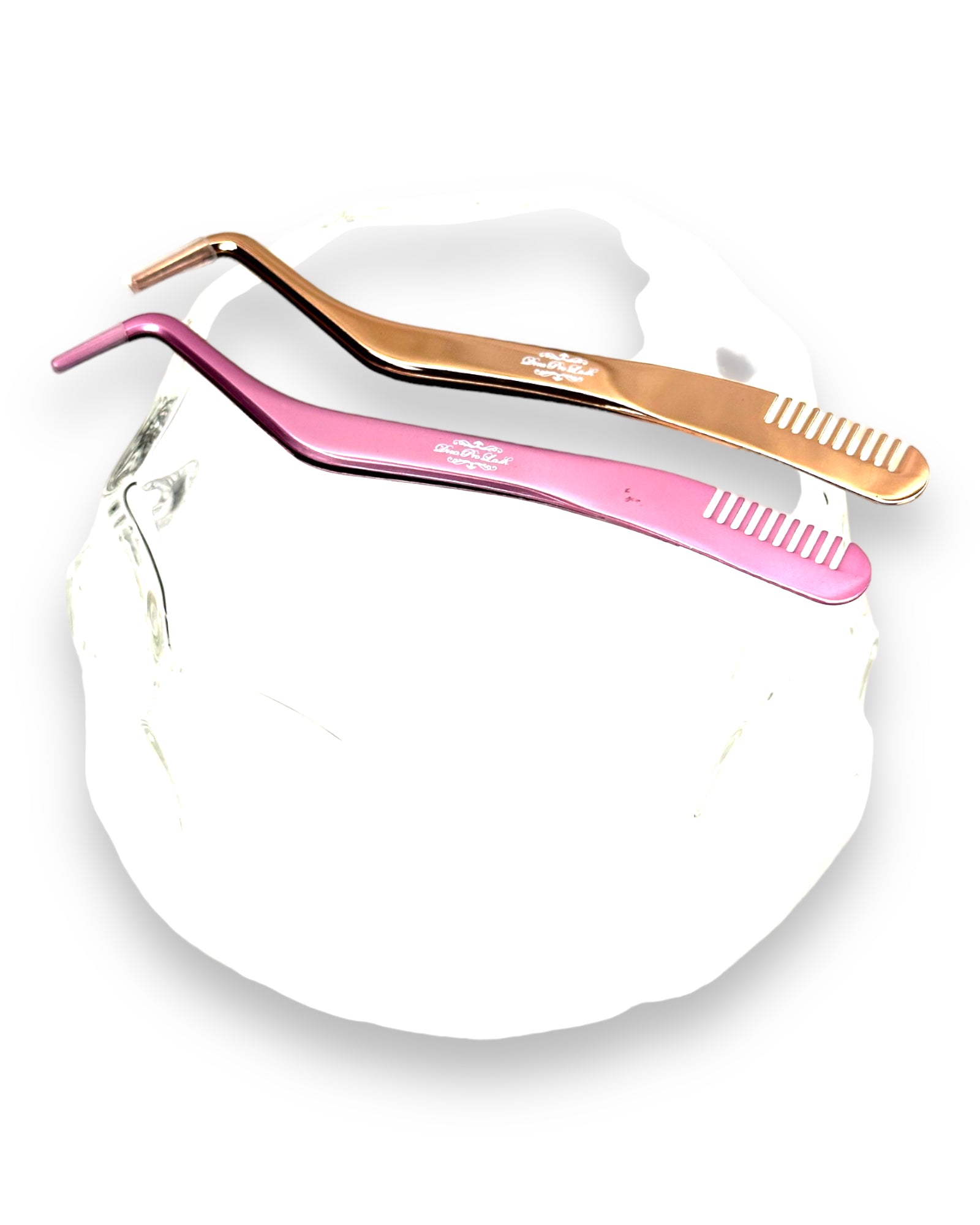 A snug little tweezer used for picking up the lash clusters and for pressing together the natural eyelash and the eyelash cluster.