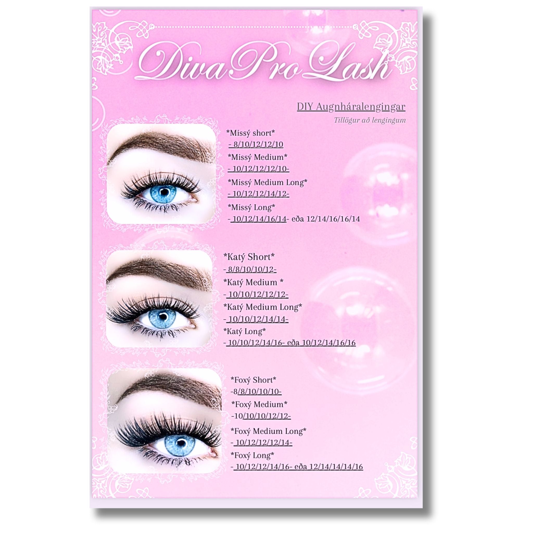• 168 augnhárabúnt sem eru sterk, sveigjanleg, CC sveigja og náttúrulega spæký með svartri eyeliner-rönd